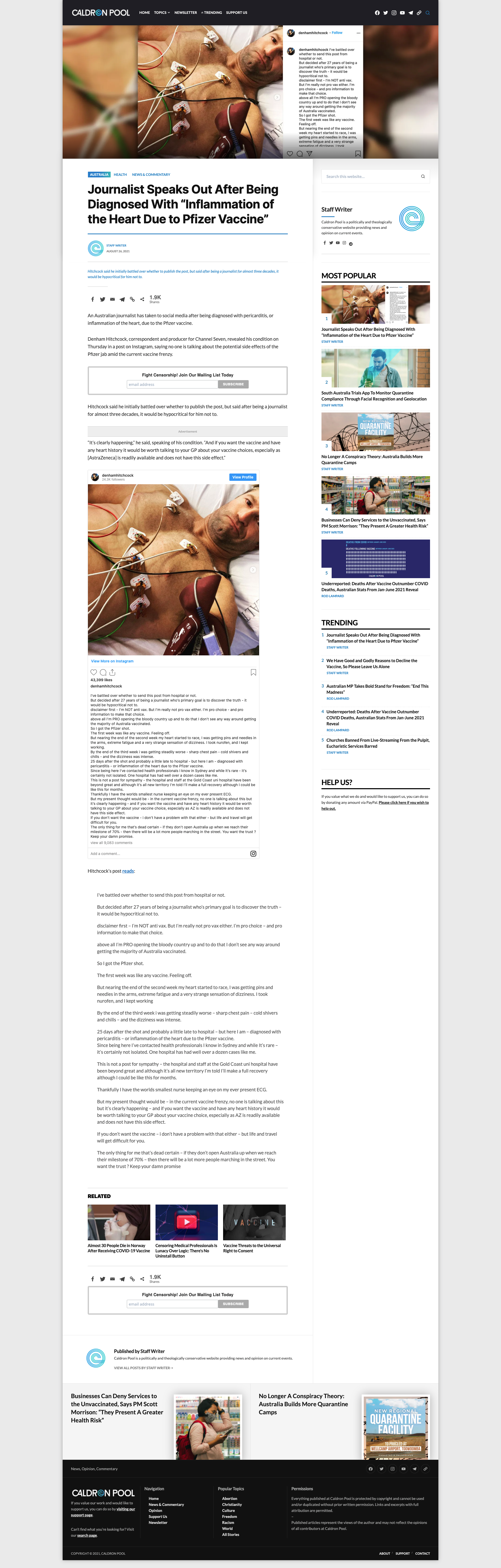 He took the vax like a good citizen and his trust was betrayed when he landed up in hospital with an acute case of myocarditis - which is a fairly rare condition but now quickly on the rise the world over. This is not due to covid.. it IS due to the covid gene therapy.