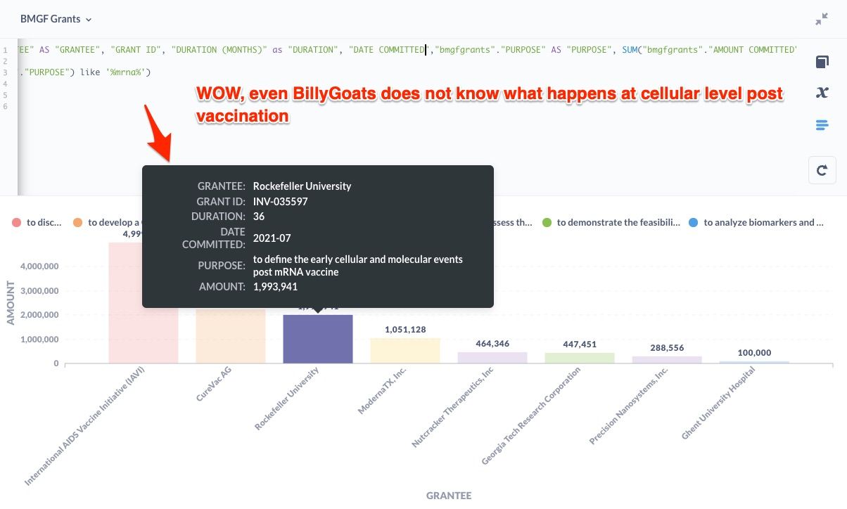 Yes, it appears in 2016 BMGF did indeed invest almost 2Billion in grant monies into mRNA research. I don't even need to point at it with big red arrows its so obvious above. And again massive outlay (almost 2Billion again) for mRNA and "general support" services in 2021..