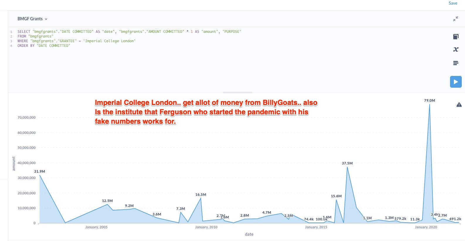 Is this too obvious? He massively invests in "gene therapies" and then starts predicting "plagues".. at the same time is corrupting "Imperial College" (where the main trends for pandemics are evaluated by the limp neil fergason and his team) and other university and support systems.. and then in trumps reign fauci "predicts" trump will definitely get a viral plague... and then 2019, event201 and then covid..