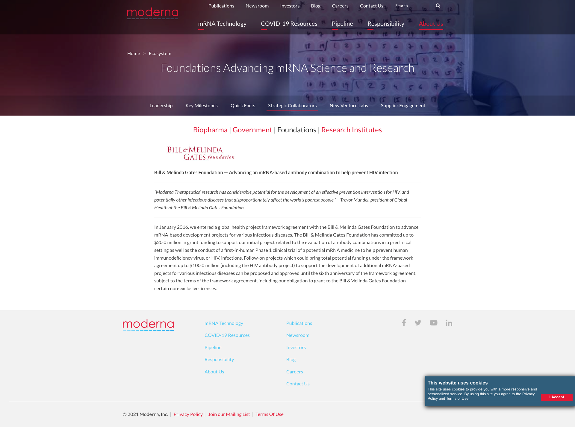 In January 2016, we entered a global health project framework agreement with the Bill & Melinda Gates Foundation to advance mRNA-based development projects for various infectious diseases.