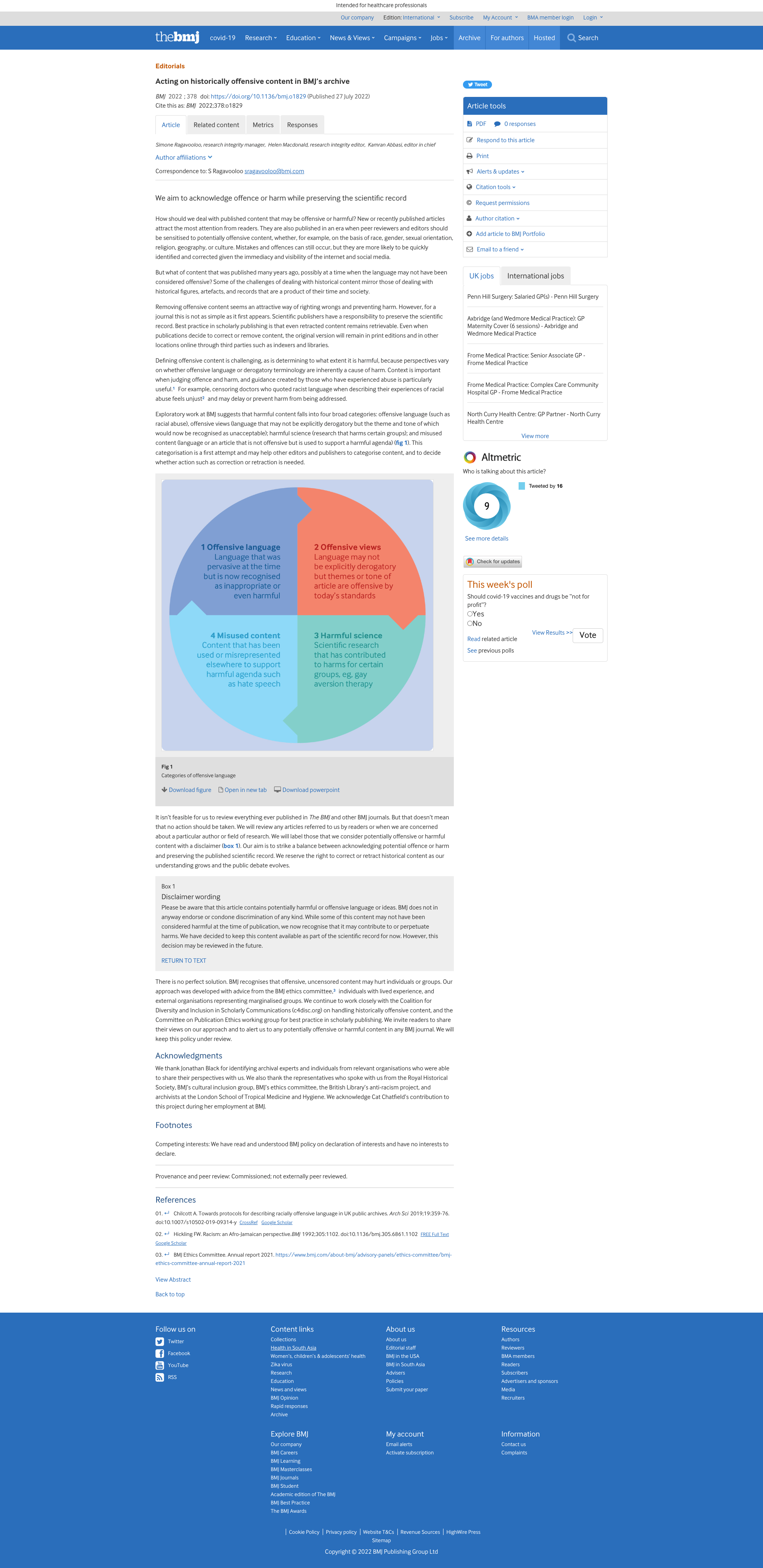 Acting on historically offensive content in BMJ’s archive