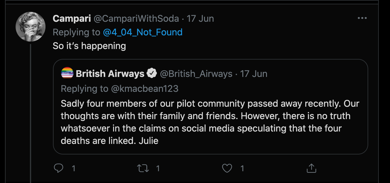 Claims that British Airways is in “crisis talks” with the British government due to the deaths of three pilots who received COVID-19 shots are unfounded, a company representative and British medicines regulator spokesperson has told Reuters.