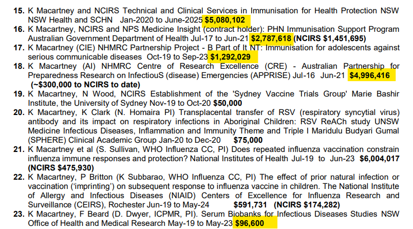 The lead vaccine researchers driving all government policy in Australia received $65,330,038 in government grants covering 2020-2021.