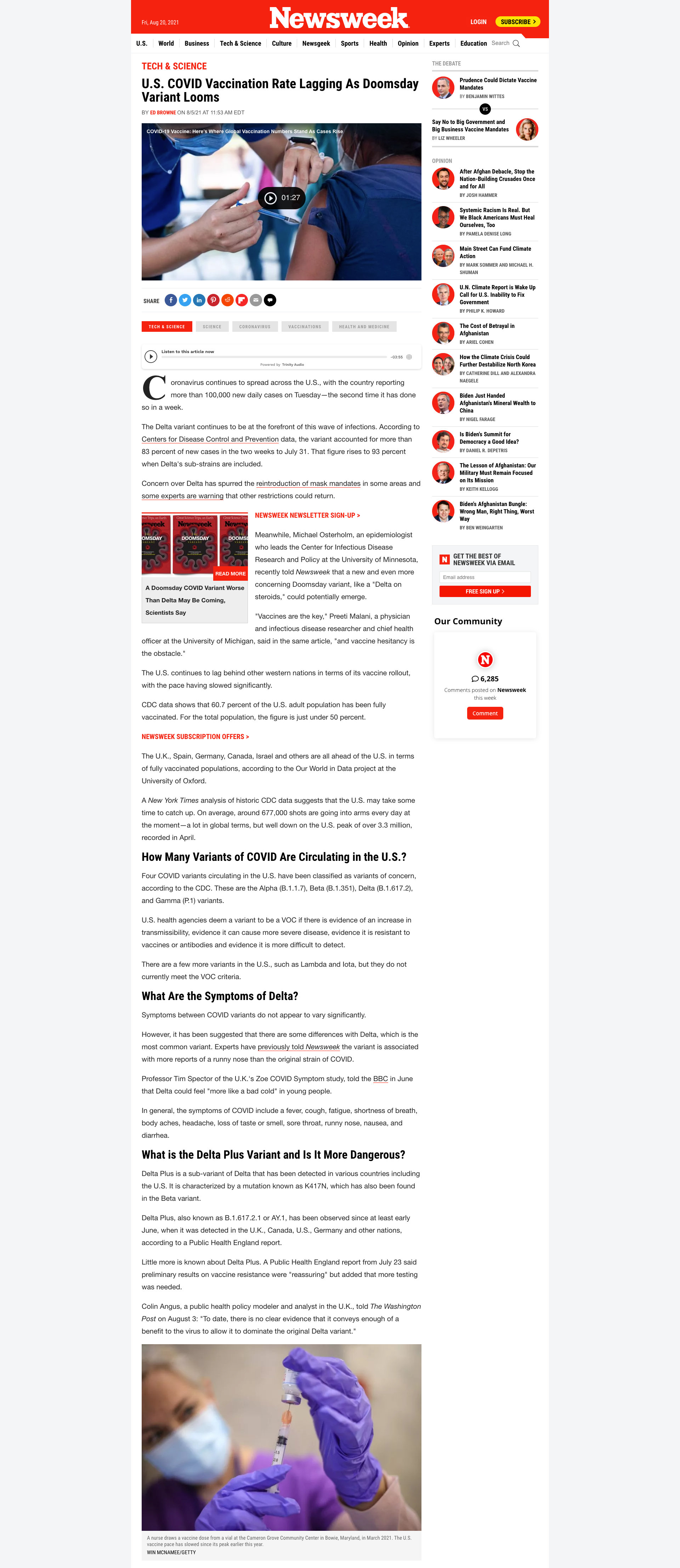 U.S. COVID vaccination rate lagging as Doomsday variant looms
