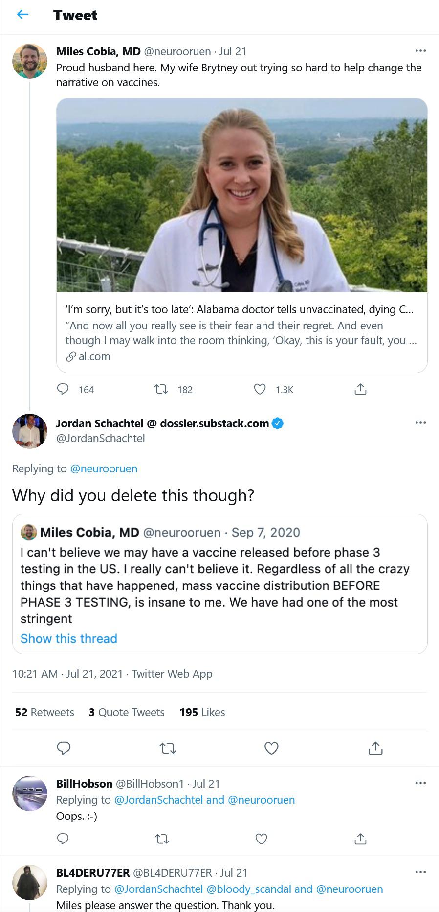 and her husband is an idiot (and both are politically driven idiots that bring shame on their profession and should be hauled before a board of medical examiners.