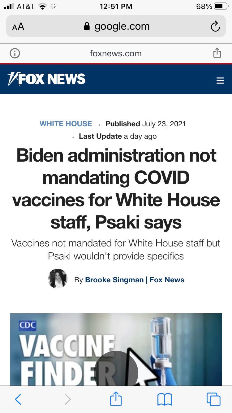 Biden administration not mandating COVID vaccines for White House staff, Psaki says