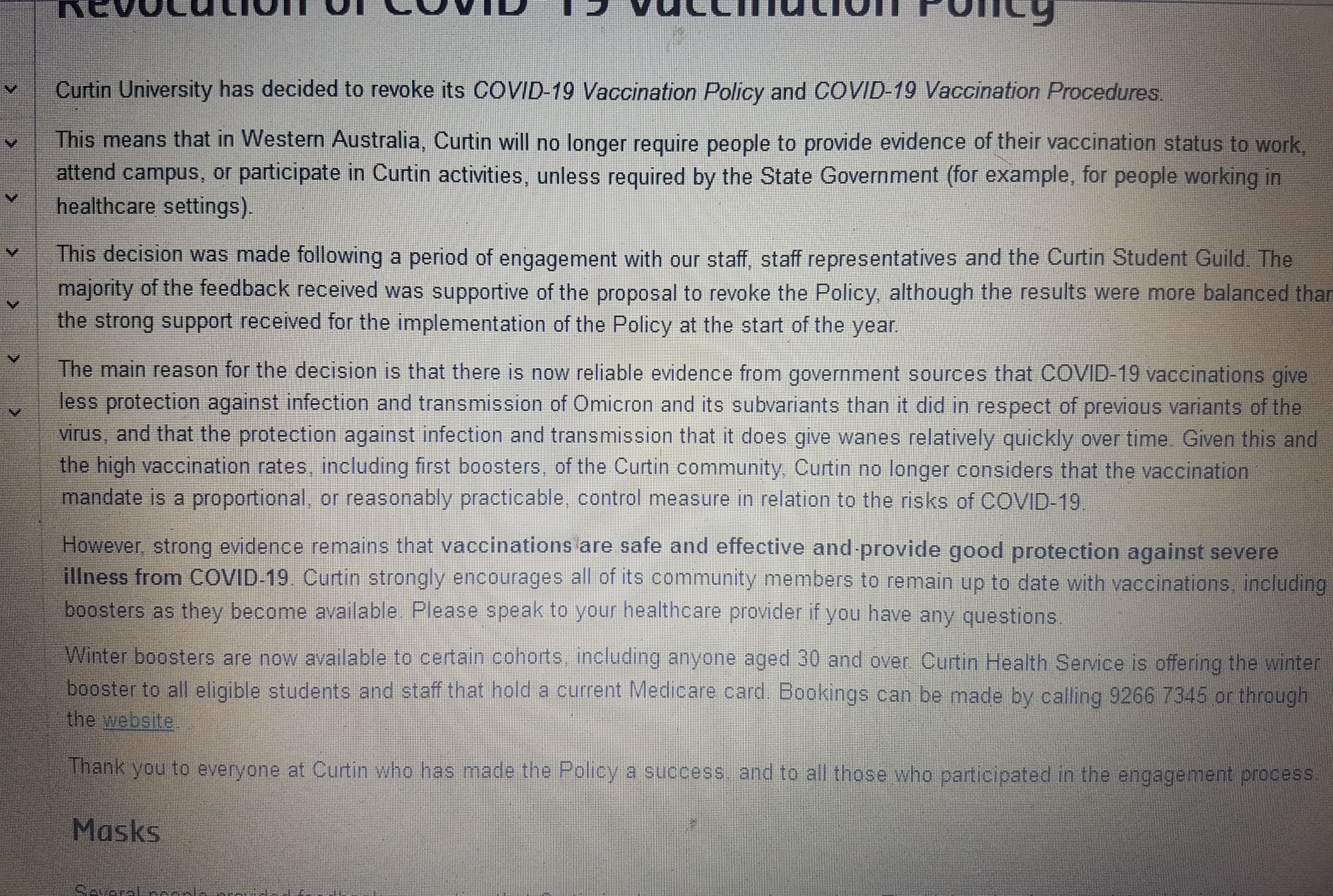 In Western Australia even the Universities (who have been very dictatorial like in their demands that students and staff be "Fully vaccinated" whatever that means. Despite it being evident for over a year now that covid is not dangerous to anyone under 80.