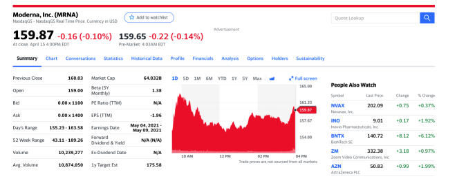 Moderna, Inc. (MRNA) Stock Price, News, Quote & History - Yahoo Finance