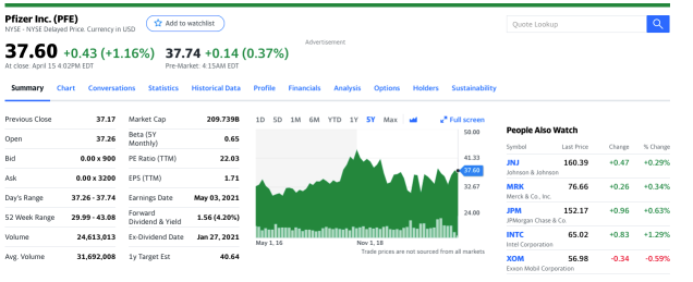 Pfizer, Inc. (PFE) Stock Price, News, Quote & History - Yahoo Finance