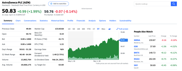 Astrazeneca PLC (AZN) Stock Price, News, Quote & History - Yahoo Finance