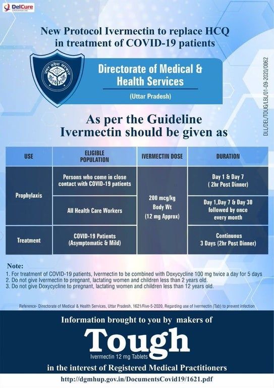 Delhi and Uttar Pradesh followed the All India Institute of Medical Sciences (AIIMS) guidance published April 20, 2021, which called for dosing of .2 mg per kg of Ivermectin per body weight for three days. This amounts to 15 mg per day for a 150-pound person or 18 mg per day for a 200-pound individual.